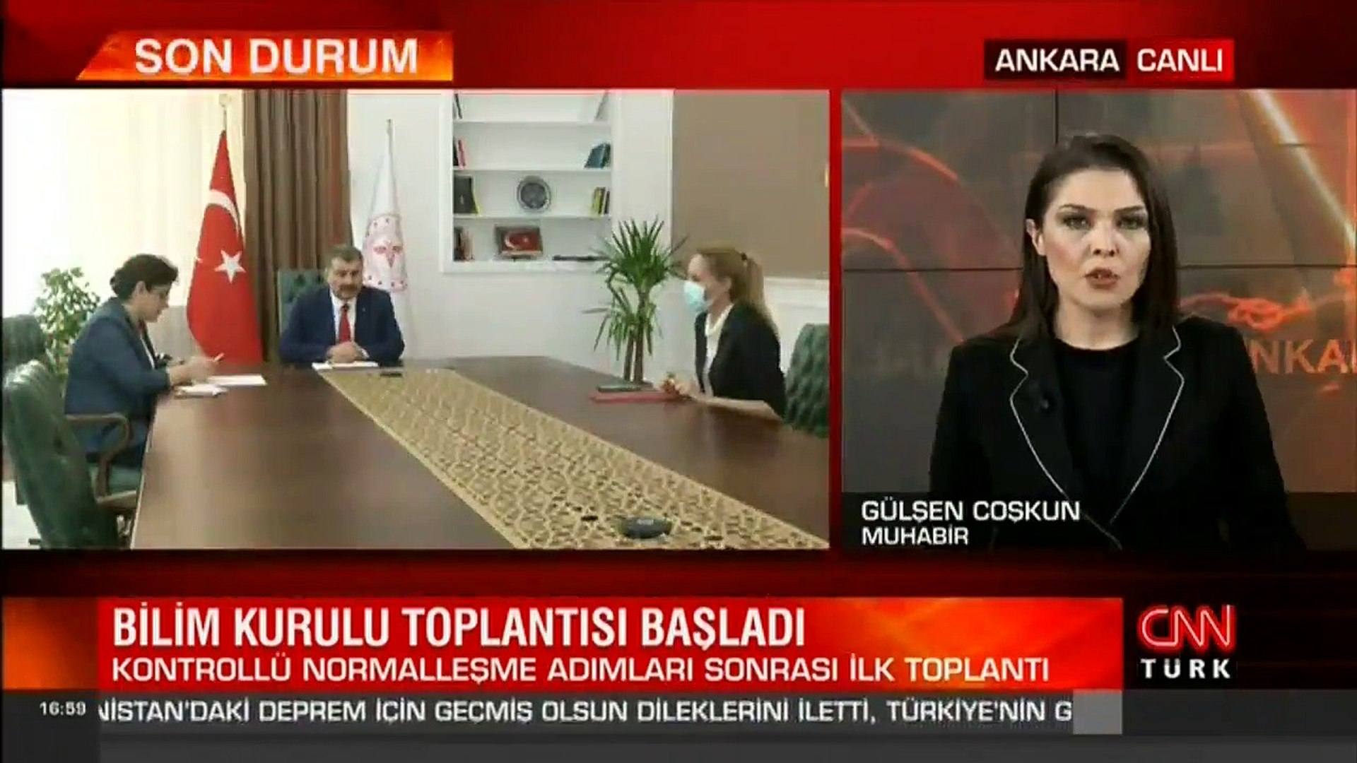 Haber kanallarında bilim kurulu toplantısı olduğu ve saat 17.00'da başlayacağı açıklanan toplantı sonunda sağlık bakanı fahrettin koca, açıklama yapacak.