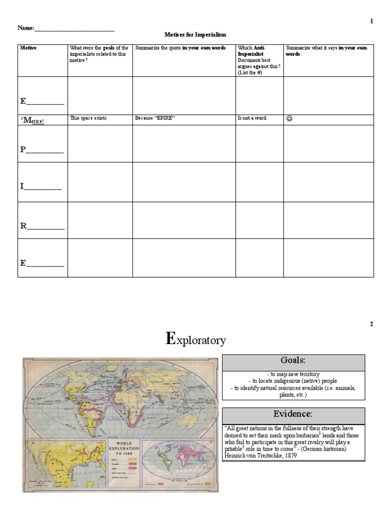 Сохранитьсохранить «motives for imperialism worksheet» для последующего чтения. Missionaries sugar growers did not (sugar growers had went. Videos (over 2 million educational videos available). These include economic, exploratory, ethnocentric, political, and religious motives. The rush to expand empires and the ensuing age of imperialism was fueled by a few different motivations.